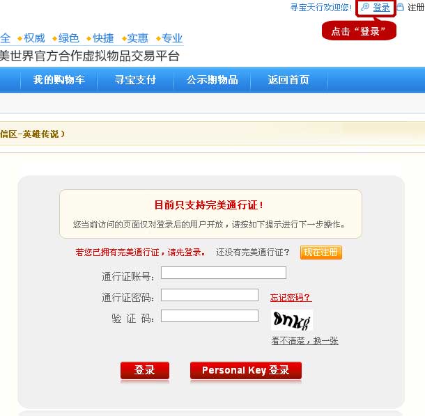 “寻宝天行”和“寻宝支付”目前只支持“完美通行证”登录。