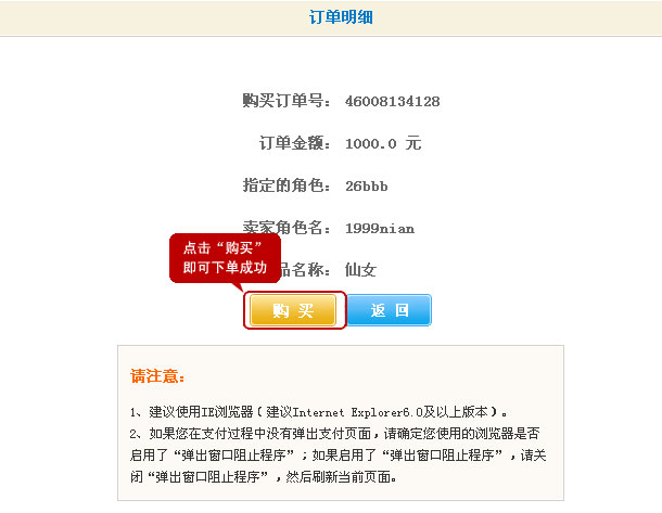 6、查看订单详细,点击“购买”按钮并跳转至寻宝支付(www.xunbaozhifu.com),根据提示付款。